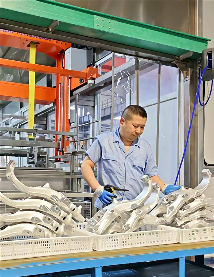 工作人員整理新能源乘用車轉(zhuǎn)向節(jié)。(受訪單位供圖)