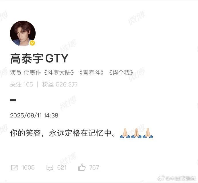 11日下午,于朦朧圈內(nèi)好友@高泰宇GTY 發(fā)文:“你的笑容,永遠(yuǎn)定格在記憶中。 ”引發(fā)網(wǎng)友猜測(cè),不少網(wǎng)友認(rèn)為他是在悼念于朦朧。