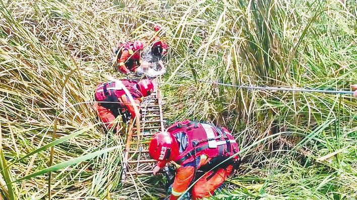 此時老人意識清醒,手中還握著鐵鍬和柴刀,但整個身體被淤泥緊緊困住,皮膚因長時間浸泡已發白起皺。消防員迅速合力將其從淤泥中救出,并轉移至拉梯上。隨后,4名消防員在泥濘中協力將拉梯拖回岸邊,把老人抬上擔架,移交120醫護人員送醫救治。