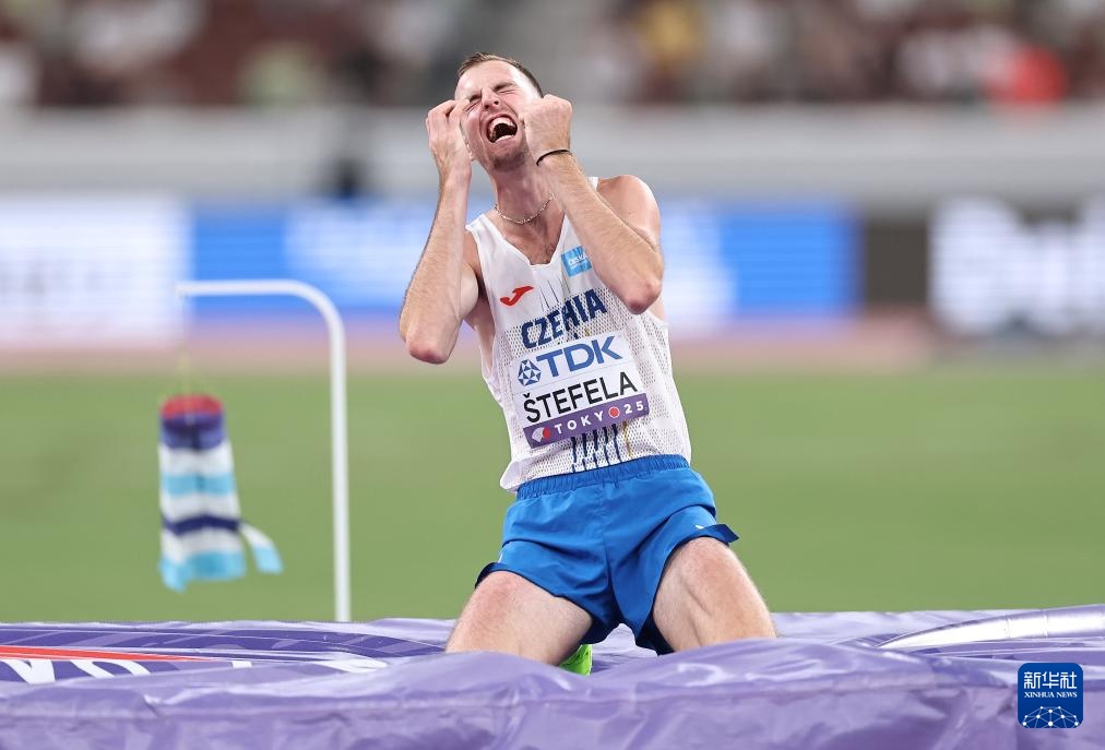 9月16日,捷克選手斯特菲拉在決賽試跳成功后慶祝。