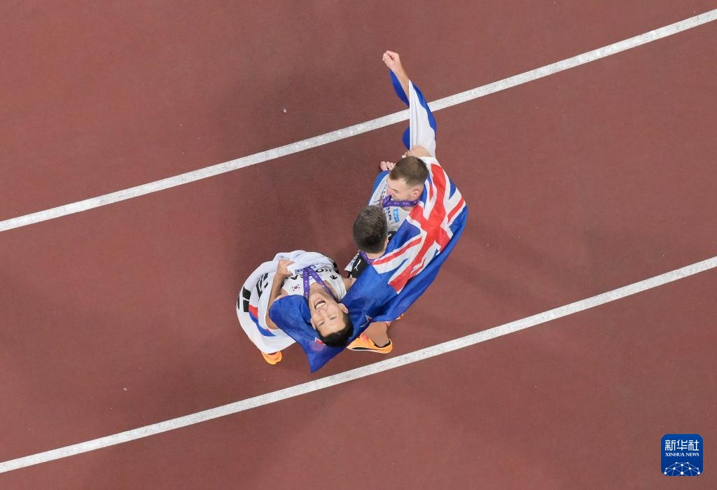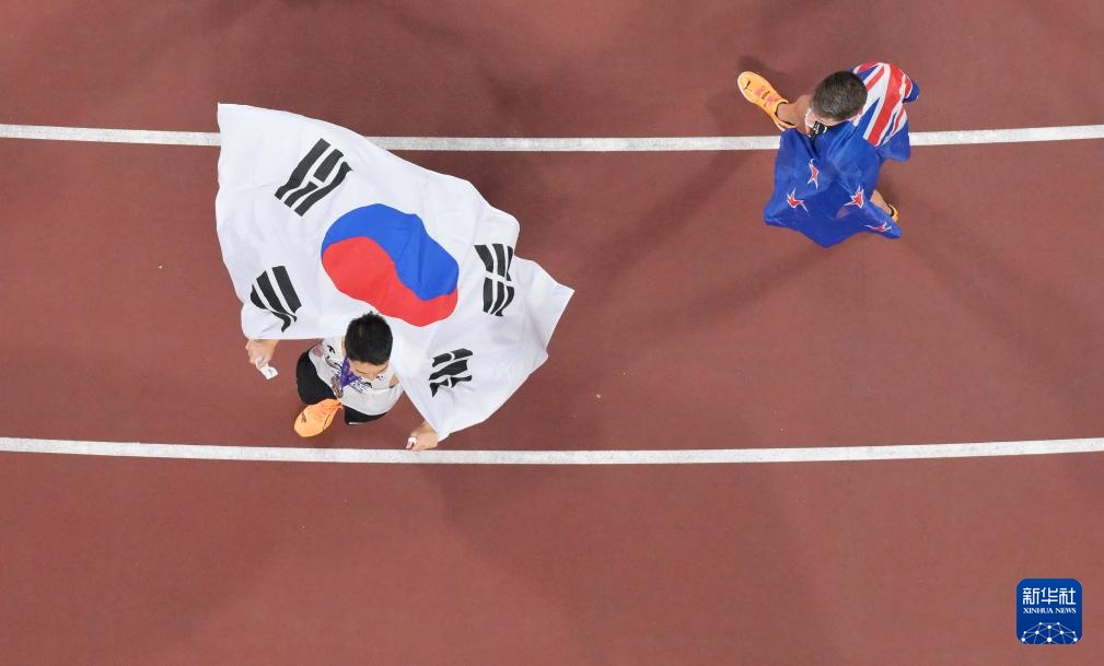 9月16日,冠軍新西蘭選手科爾(右)和亞軍韓國選手禹相赫在決賽后慶祝。