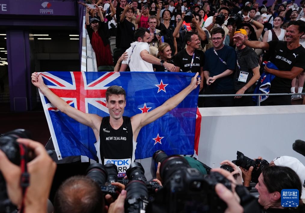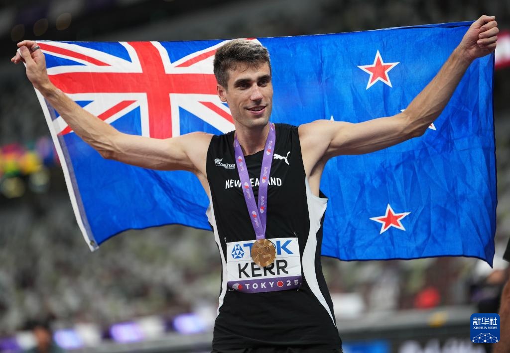 9月16日,新西蘭選手科爾奪冠后慶祝。