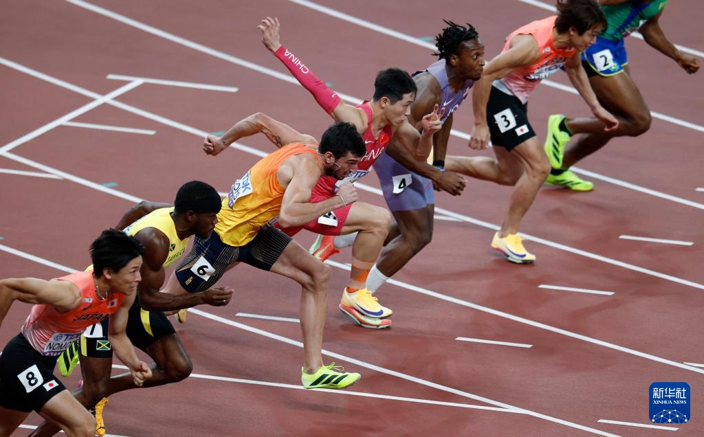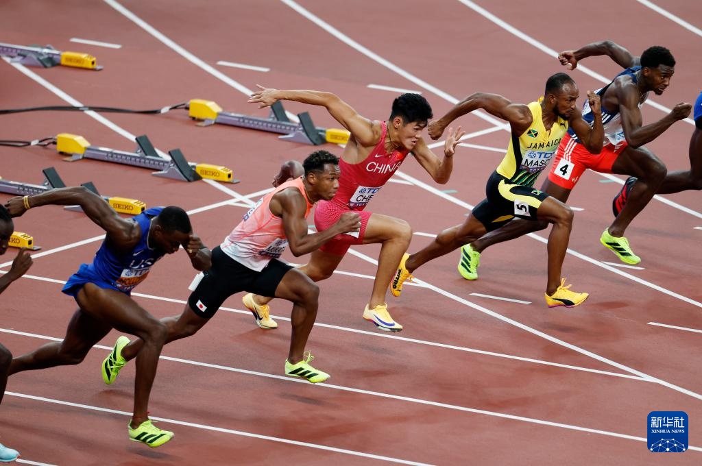 9月16日,中國(guó)選手徐卓一(右三)在半決賽中起跑。最終,他無(wú)緣決賽。