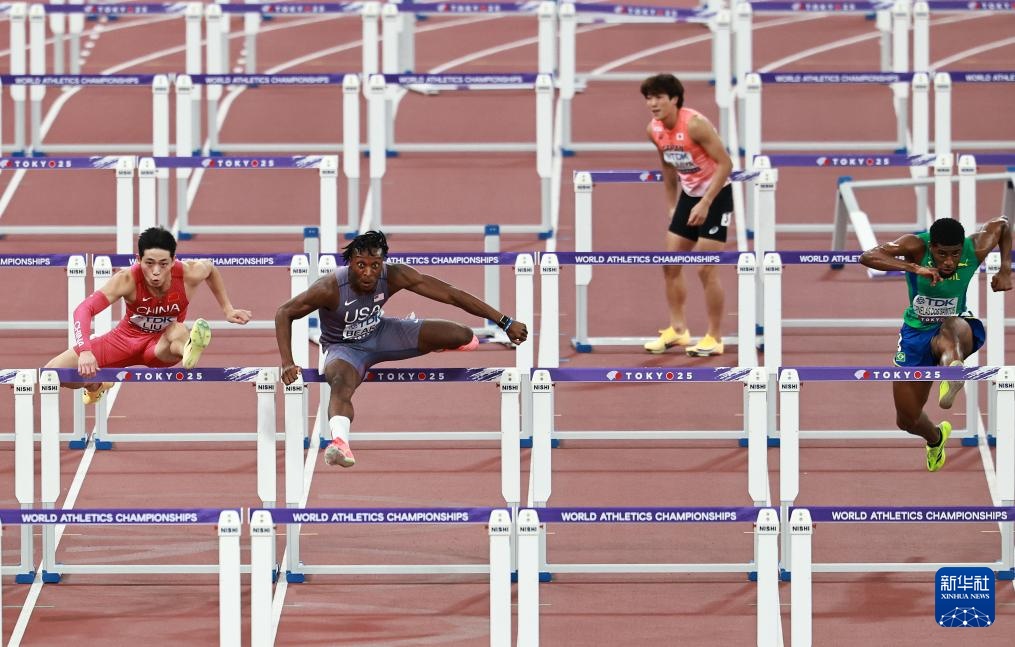 當(dāng)日,2025年世界田徑錦標(biāo)賽男子110米欄半決賽在日本東京舉行。