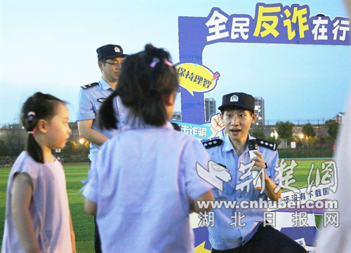 在宣傳展板區域,民警結合近年來典型網絡詐騙案例,向過往群眾講解防范要點,并引導大家掃碼下載國家反詐中心APP,幫助開啟詐騙預警功能。