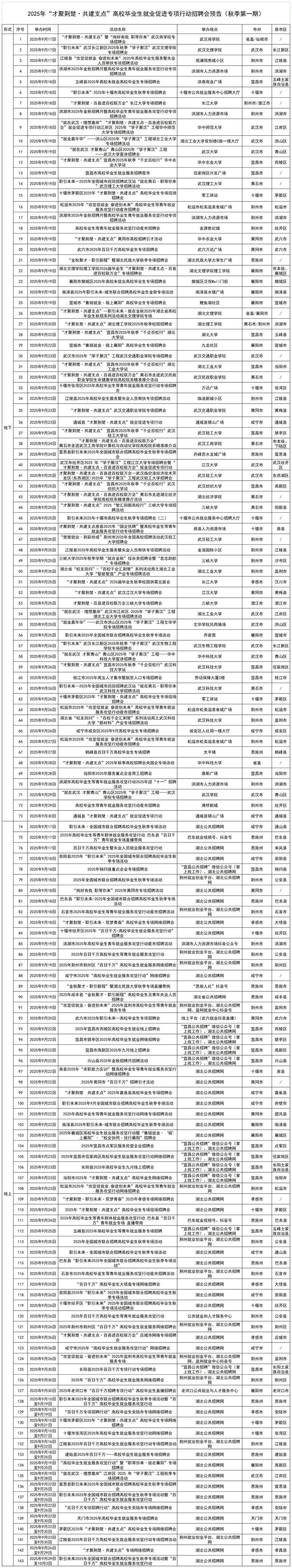 2025年“才聚荊楚·共建支點”高校畢業(yè)生就業(yè)促進專項行動招聘會預告(秋季第一期)