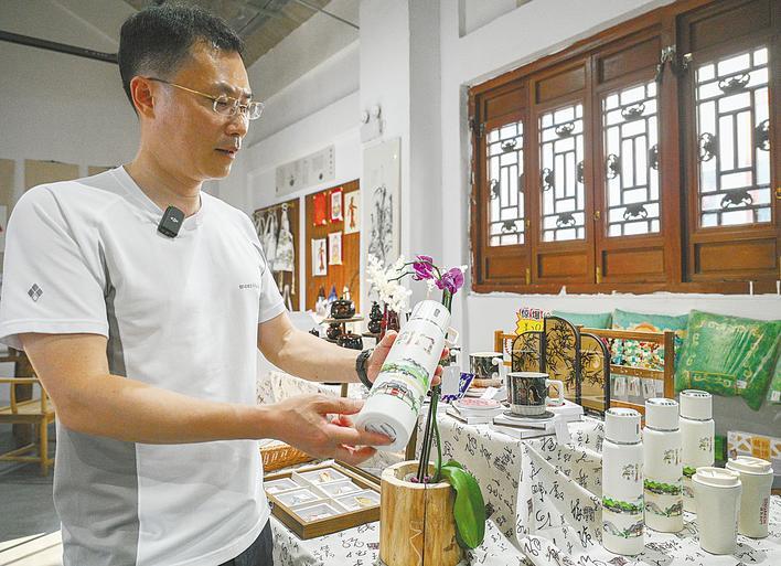 張金元介紹店里的文創(chuàng)產(chǎn)品。