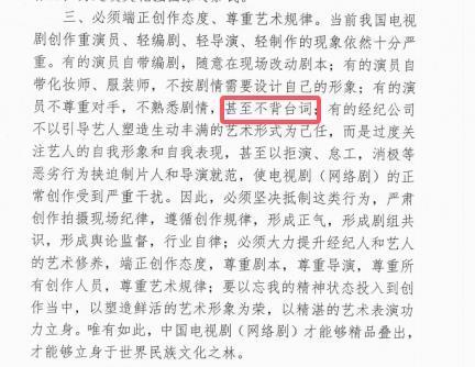 2020年12月,中國電視劇制作產業協會《關于電視劇(網絡劇)制作“去浮華浮躁、重創作規律”的幾點意見》第三點指出,必須端正創作態度、尊重藝術規律。特別指出“有的演員不尊重對手,不熟悉劇情,甚至不背臺詞”。可見,演員該不該背臺詞本就沒有爭議空間。反倒是,一些演員背臺詞、準時甚至成了優點。不得不說,這是怪現象。