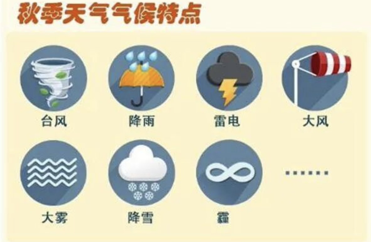 秋天已至,樹樹皆秋色,山山唯落暉,出游欣賞湖光山色時正當其時。但因秋天北方冷空氣不斷侵入,太陽輻射越來越少,氣溫下降明顯,氣候呈現出白天氣溫仍然較高,早晚溫度可能低,甚至感覺是兩個不同的季節;秋臺風強度相對較強,造成的損失也比較嚴重,影響秋季出游;冷暖空氣頻繁相遇相互作用,容易形成風,且空氣干燥濕度低;頻繁南下的冷空氣與滯留的暖濕空氣相遇,使鋒面活動加劇并產生較長時間的陰雨等特點。