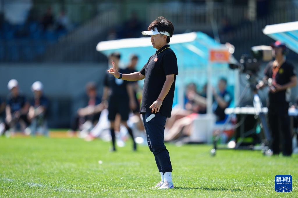 9月18日,北京師范大學女足主教練畢妍在比賽中指揮。