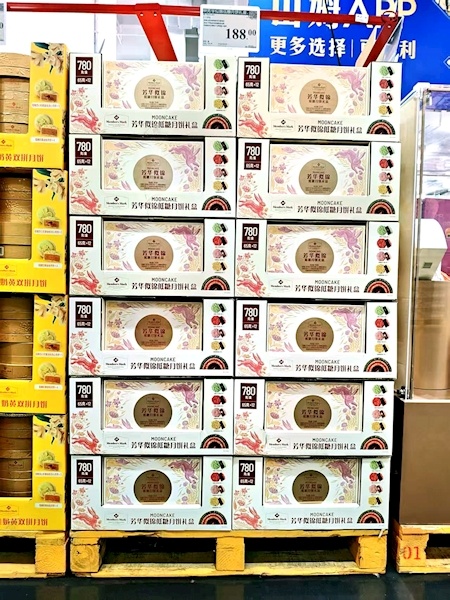 據山姆一位工作人員介紹,這款售價188元的月餅禮盒,是山姆今年剛推出的新品,月餅的外觀是梔子花、牡丹花、桂花、梅花等形狀,食材則添加了枸杞、山藥、阿膠、石斛等多種中藥材,滿足消費者對健康、輕負擔的需求。“這款月餅目前很受歡迎,現在越來越接近中秋佳節,預估本周末開始會迎來一個銷售高峰。”