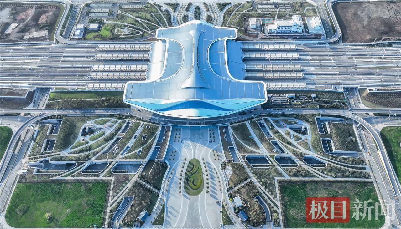 15時(shí)56分,試運(yùn)行列車(chē)緩緩駛進(jìn)宜城站。宜城站是襄荊高鐵新建的客運(yùn)站點(diǎn),位于襄陽(yáng)市宜城市區(qū)西北部龍頭街道鐵湖村。作為宜城市首座高鐵車(chē)站,其建成將填補(bǔ)宜城“無(wú)高鐵”的空白。站內(nèi)設(shè)有2個(gè)站臺(tái)4條鐵路線,站房面積約6000平方米。宜城站整體設(shè)計(jì)深度融合宜城“楚國(guó)古都、荊楚雄風(fēng)”的地域文化,外立面造型呈現(xiàn)“楚皇城牌樓”的核心特征。內(nèi)部候車(chē)大廳立柱采用雕刻“楚鼎勾連紋”的鋁板,柱礎(chǔ)陽(yáng)刻6種“宜”字古漢字;進(jìn)站通廊門(mén)套通過(guò)鋁板折邊工藝,還原“楚皇城牌樓”的立體層次感;吊頂中心藻井搭配發(fā)光軟膜與青銅器紋樣,營(yíng)造出莊重而富有文化氣息的空間氛圍。