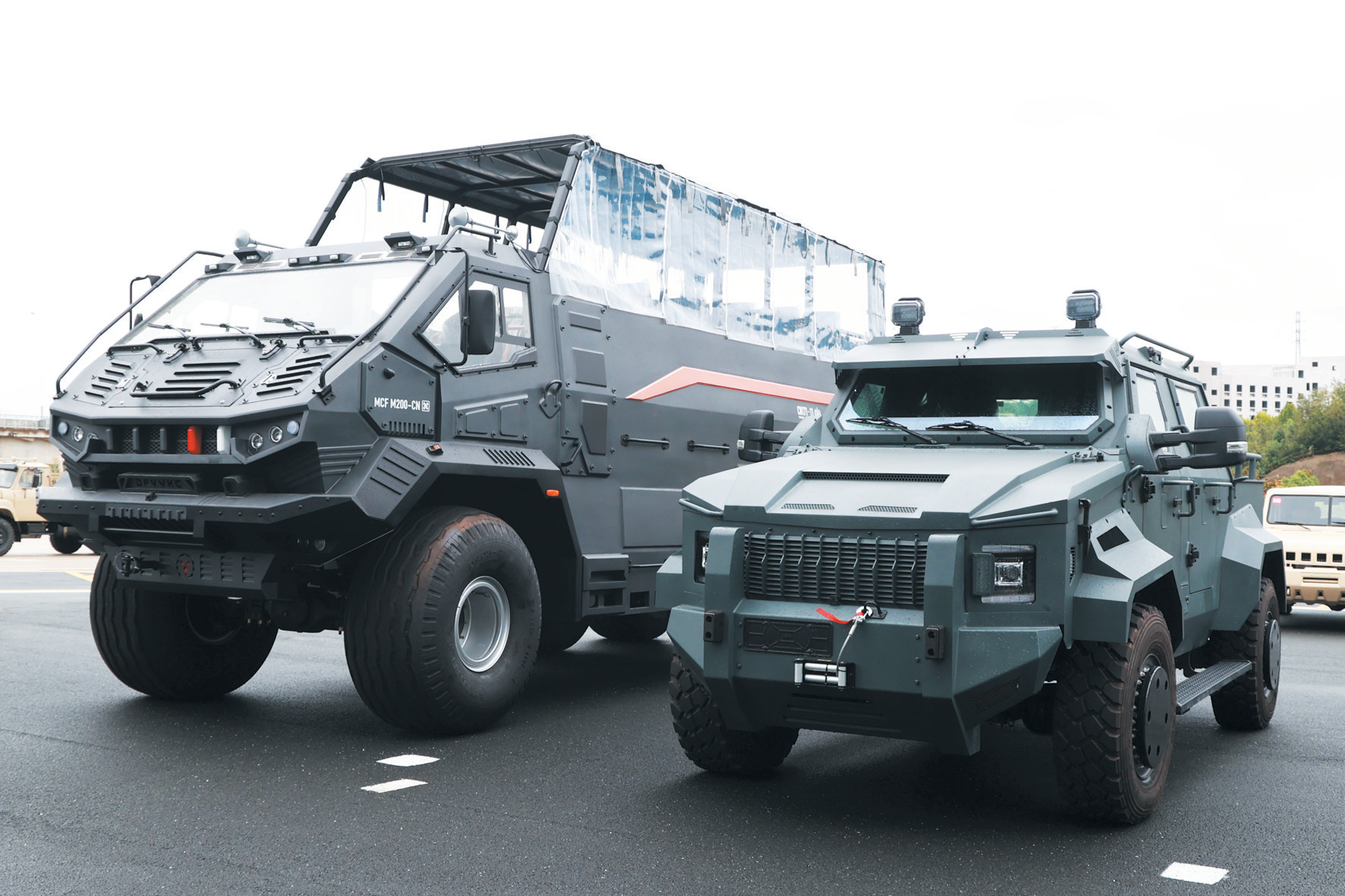 ▲湖北越野專用車有限公司生產(chǎn)的六驅(qū)沙漠沖浪車(左)。