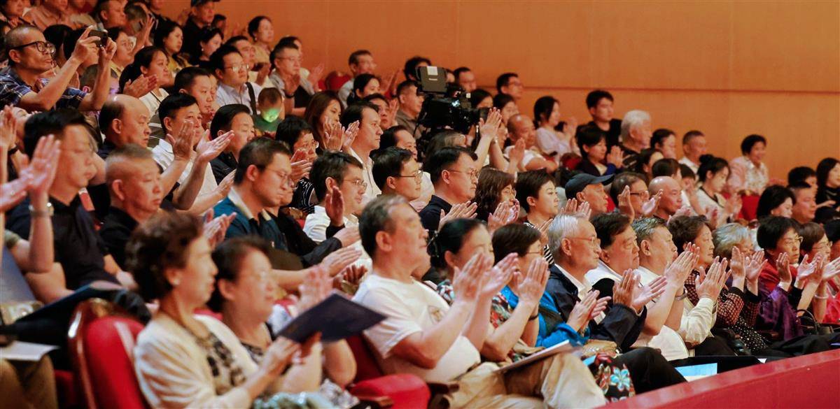 音樂會在吳粵北創作的激昂交響序曲《高峽出平湖》中拉開帷幕,宏偉的樂章仿佛將三峽工程的壯闊圖景鋪展于聽眾眼前。樂曲收尾時,恢宏的音響暫歇,現場爆發出熱烈而持久的掌聲,許多觀眾不禁為之動容。