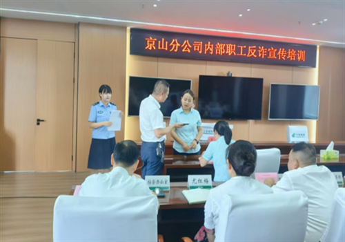為提高職工的辨別能力和防范意識,8月27日,京山市公安局刑偵大隊民輔警走進京山市郵政分公司,開展反詐宣傳培訓。“大家遇到神色慌張的客戶,且拒絕說明取款用途時,一定要多留個心眼,這很可能是遭遇詐騙的信號!”民警結合本地高發詐騙案例,細致解析電信詐騙常見套路,并傳授“一看二問三核實”的快速識別技巧。