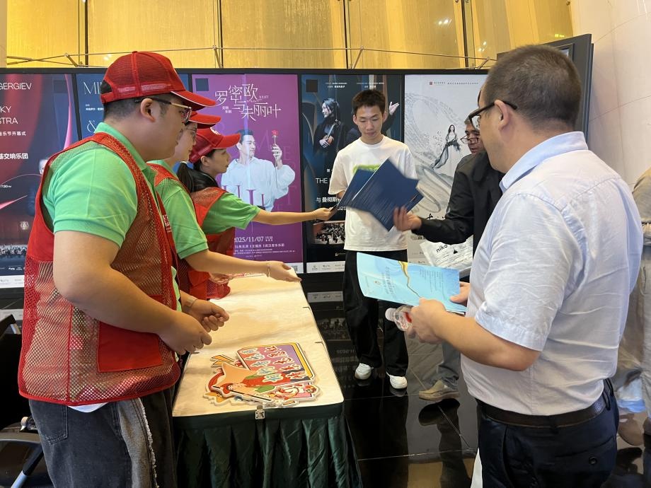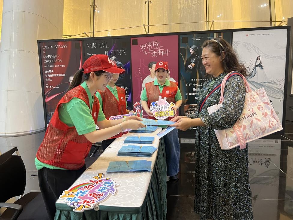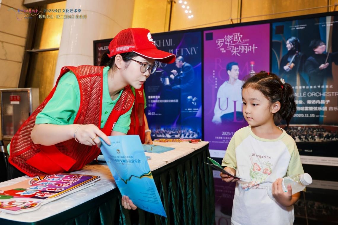“您知道嗎,這首曲子是以長(zhǎng)江的波瀾壯闊為靈感創(chuàng)作的……”音樂會(huì)開演前,志愿者們穿梭在候場(chǎng)人群中,繪聲繪色地向賓客講解長(zhǎng)江文化藝術(shù)季的內(nèi)涵、“聆聽長(zhǎng)江”音樂周曲目背景等知識(shí)。為了讓文化交流更加生動(dòng)有趣,志愿者們還設(shè)置了一些跟藝術(shù)季、音樂周相關(guān)的互動(dòng)問答,一些年長(zhǎng)的觀眾對(duì)他們連豎大拇指。