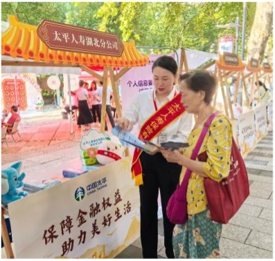 活動現場以“非遺賦新韻 金融守萬家”為主線,將傳統文化與現代金融教育有機融合。太平人壽湖北分公司精心布置專屬展臺,通過清晰易懂的主題海報、醒目直觀的風險提示標語,以及圖文并茂的金融知識折頁,以市民特別是老年人“聽得懂、能理解、用得上”的方式,細致講解金融消費者權益保護要點。