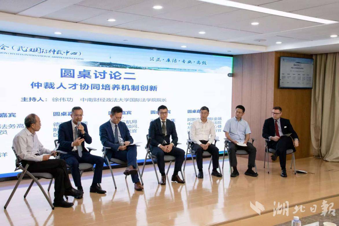 第二環(huán)節(jié)討論“仲裁人才協(xié)同培養(yǎng)機(jī)制創(chuàng)新”,由中南財(cái)經(jīng)政法大學(xué)國(guó)際法學(xué)院院長(zhǎng)徐偉功主持,大家就聯(lián)合培養(yǎng)模式、課程共建、資源共享等提出建議。