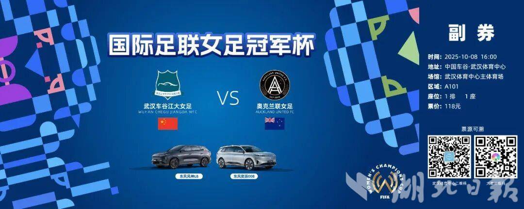 湖北日報訊(記者汪洋、通訊員朱媛媛)10月8日,首屆國際足聯女足冠軍杯將在武漢體育中心打響,亞足聯女足俱樂部冠軍聯賽新科冠軍武漢車谷江大女足將代表中國,在主場迎戰大洋洲冠軍聯賽勝者奧克蘭聯女足。湖北日報全媒記者從武漢體育中心獲悉,賽事門票主要設4檔,分別為218元/張、118元/張、50元/張、38元/張,另有VIP包廂票,分整包、分散售賣兩種形式。