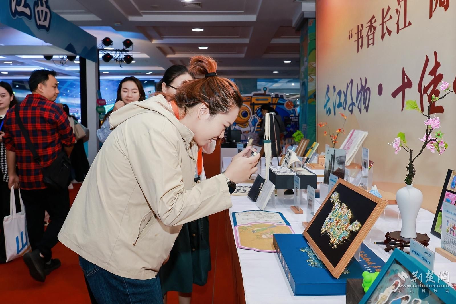 本次武漢書展期間,“長江好物”沉浸式展區成為熱門打卡地。展區集中展示八大省館特色文化產品和大學生大賽獲獎作品,手工互動區和VR漢字體驗項目吸引眾多觀眾參與。觀眾可親手制作文創產品,感受傳統手工藝魅力;也能通過VR沉浸式體驗漢字演變,領略中華文化博大精深。