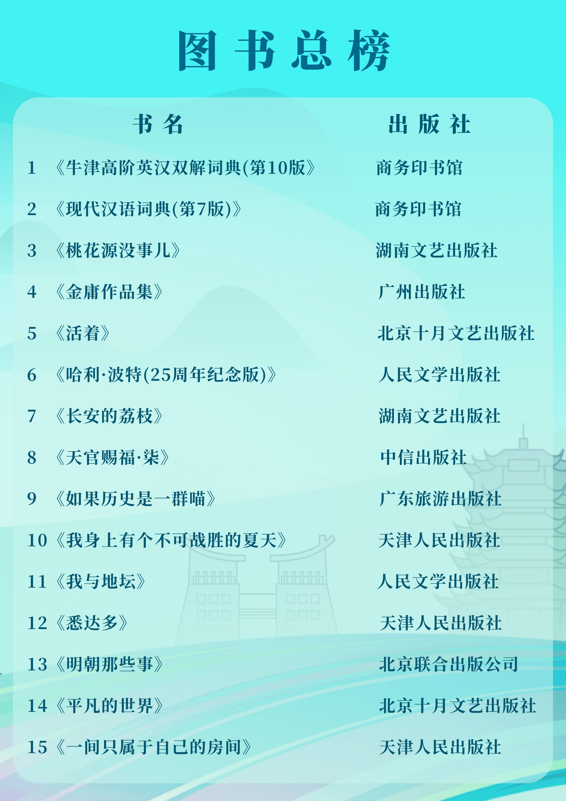 數據顯示,《牛津高階英漢雙解詞典(第10版)》《現代漢語詞典(第7版)》《桃花源沒事兒》位列圖書總榜前三。