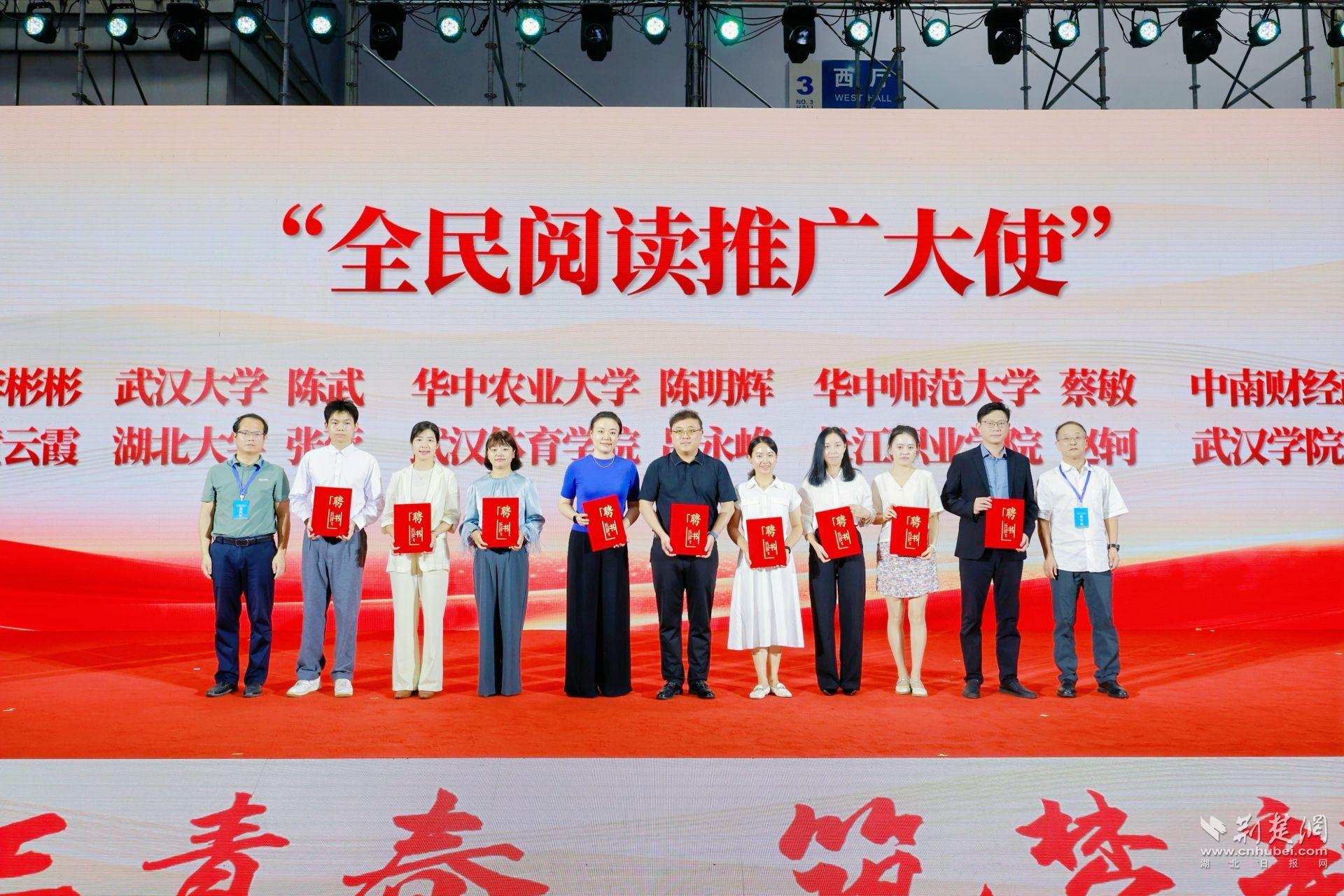 省委宣傳部宣教處處長廖明玉、省教育廳組織處處長姚剛共同頒發了湖北省高校“全民閱讀推廣大使”聘書。