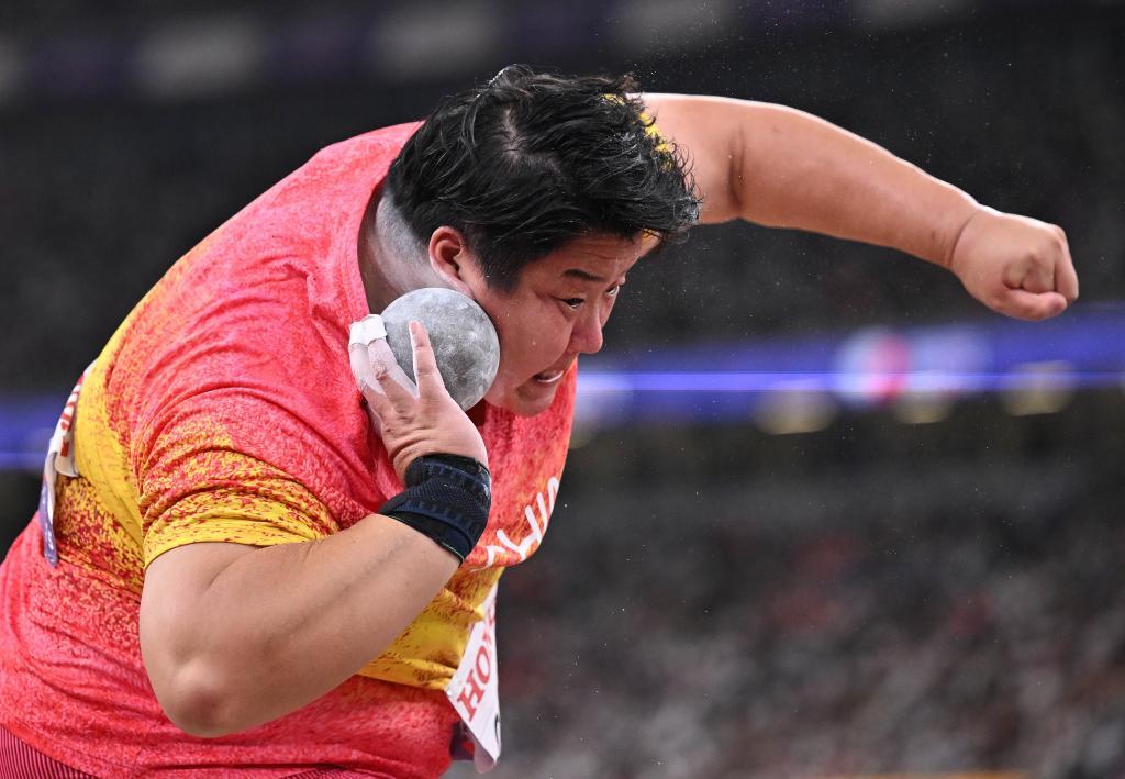 9月20日,中國選手鞏立姣在鉛球比賽中。最終,她位列第九名。新華社記者 宋彥樺 攝