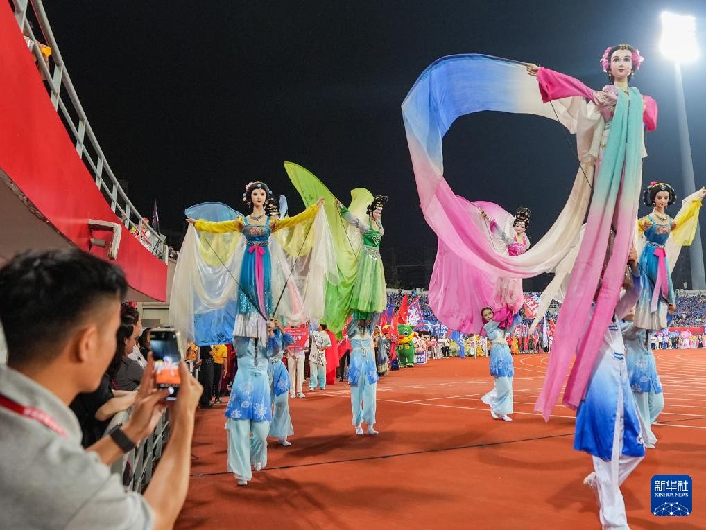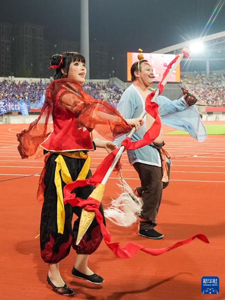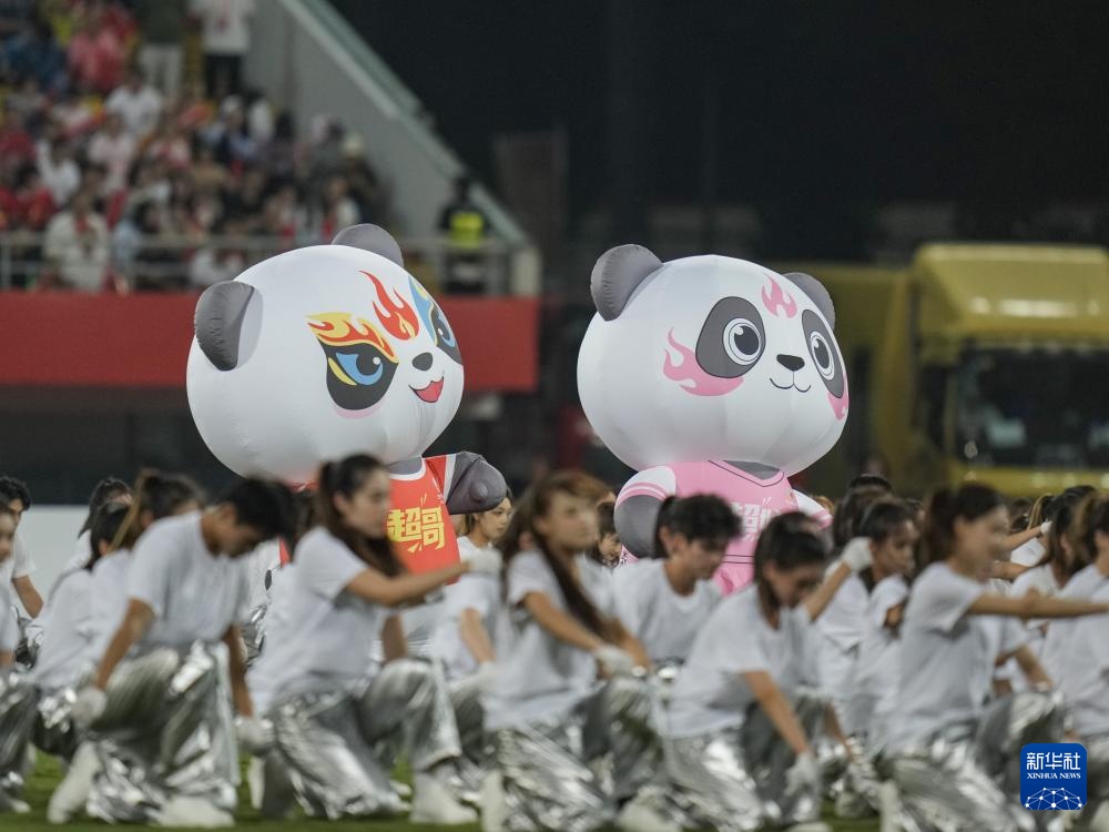 9月20日,賽事吉祥物“超哥”“超妹”在開幕式上。
