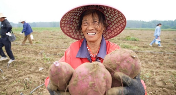 作為當地特色種植品種,“二代花葉紫薯”不僅口感軟糯香甜,更因花青素含量高的核心優勢,在市場中極具競爭力,深受消費者與采購方青睞。據測算,此次美麗村紫薯總產量預計可達150萬斤,且全程采用訂單式配送模式直供企業,既保障了紫薯快速、穩定銷售,又切實幫助種植戶實現“豐收又增收”。