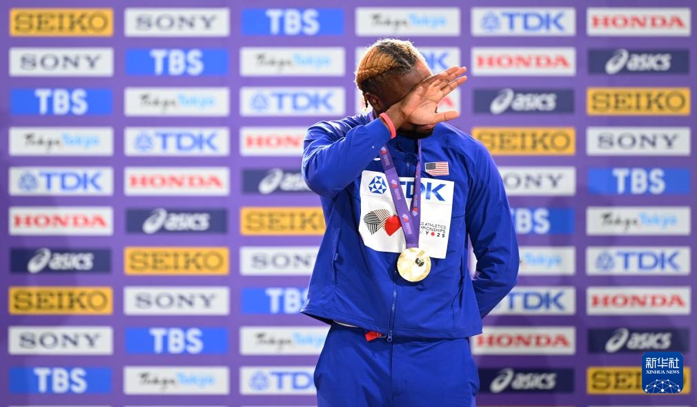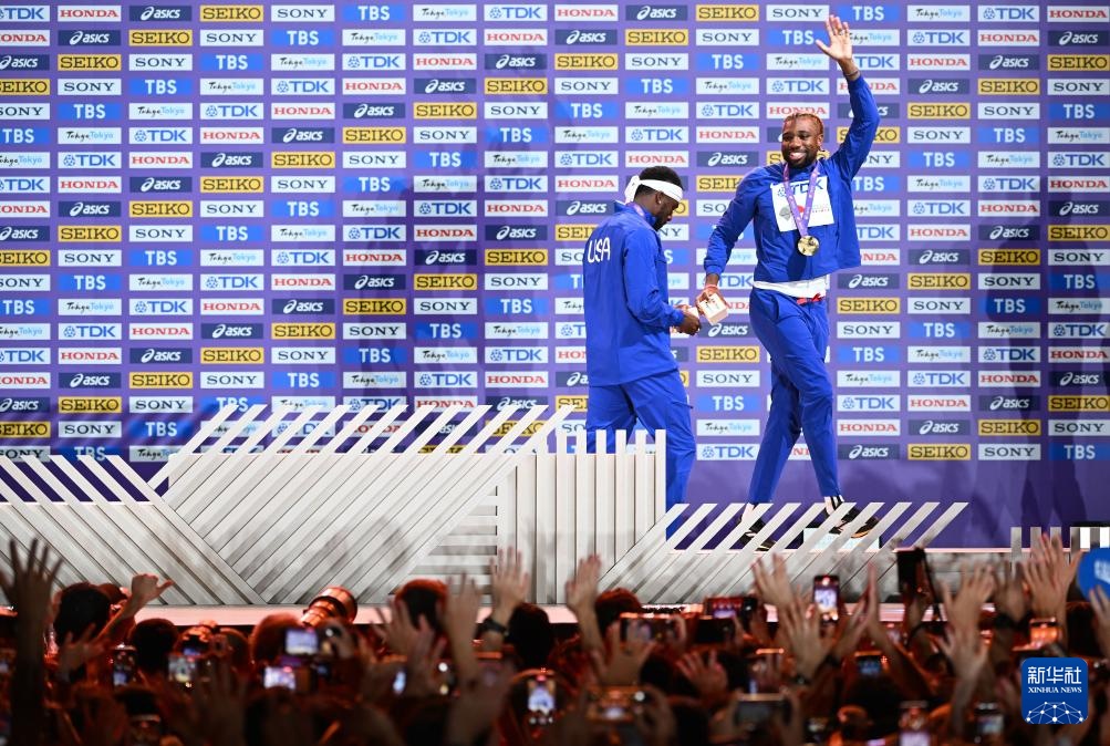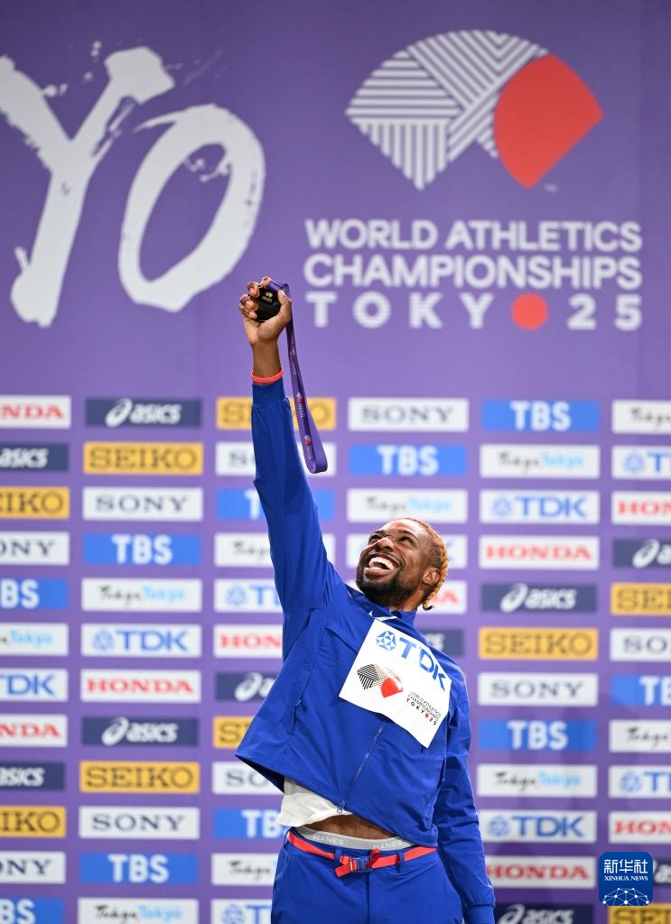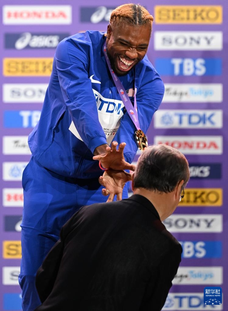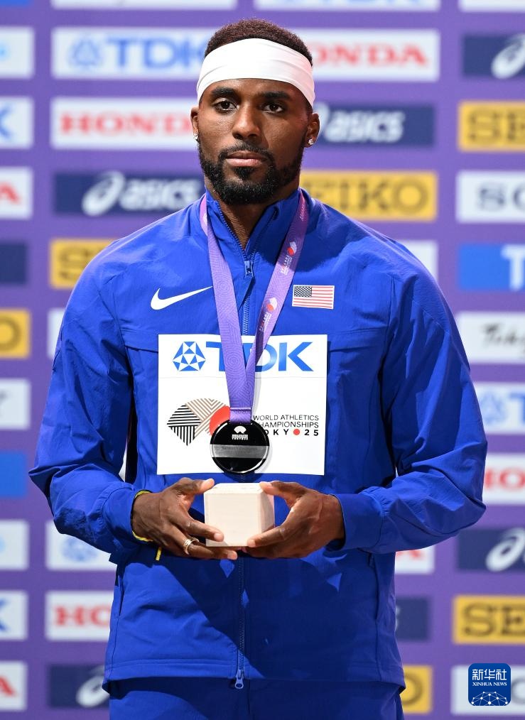 當日,2025年世界田徑錦標賽男子200米頒獎儀式在日本東京舉行。
