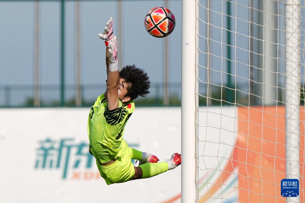 9月20日,北京航空航天大學男足守門員吳思潔在比賽中未能撲出對方的射門。