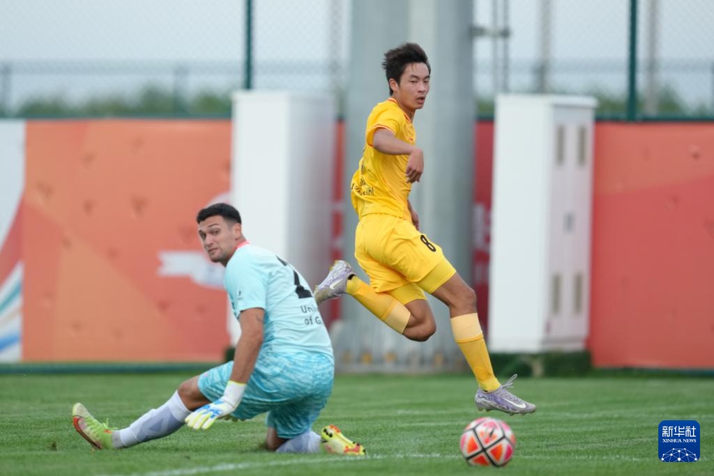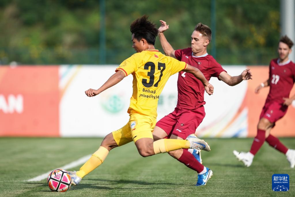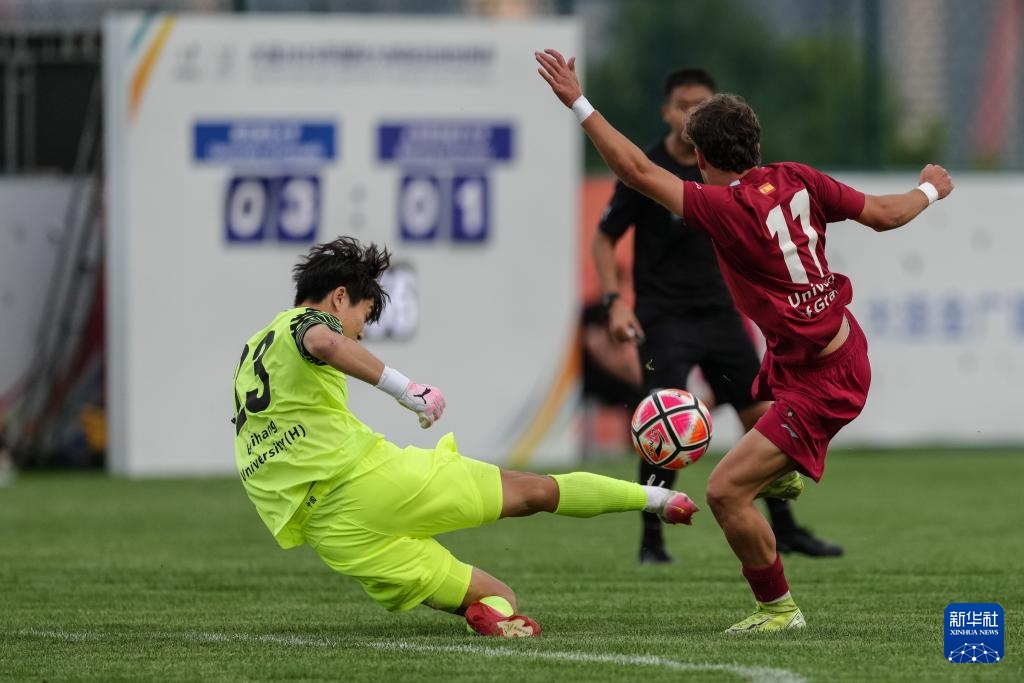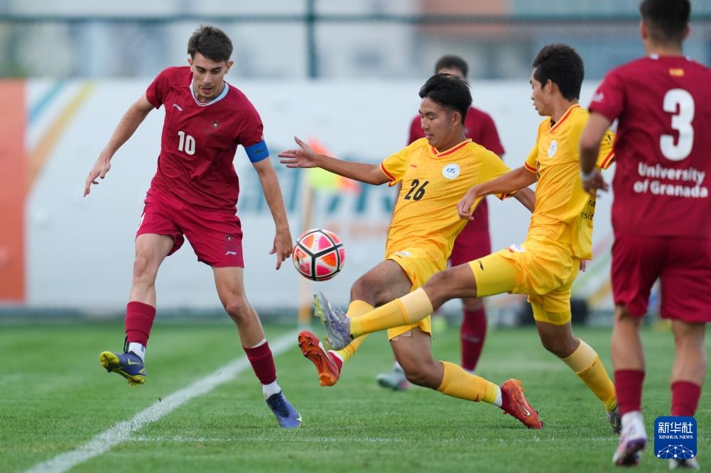 當日,2025年國際大體聯足球世界杯男子A組小組賽在大連舉行,西班牙格拉納達大學男足3比1戰勝北京航空航天大學男足。