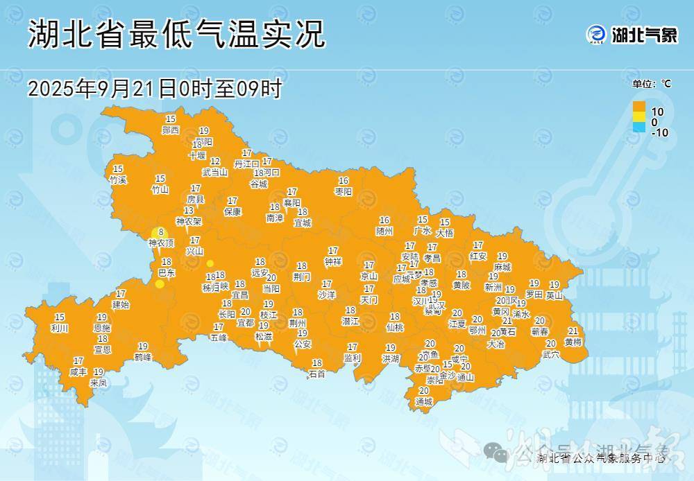 湖北日報訊(記者曾莉)在冷空氣和雨水的聯(lián)手打擊下,湖北的氣溫低迷。9月21日,全省大部陰天開場,僅隨州等少部分地區(qū)偶爾可見陽光,早晨大部地區(qū)最低氣溫僅15至19℃,僅5個國家氣象站突破了20℃。預(yù)計下周省內(nèi)將仍多降雨,氣溫將小幅回升。
