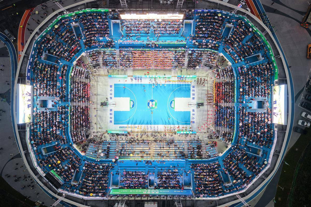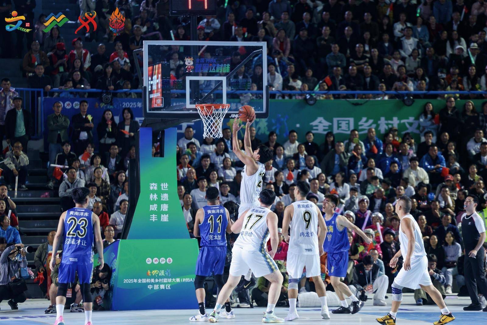 2025年全國和美鄉(xiāng)村籃球大賽(村BA)中部賽區(qū)揭幕戰(zhàn)現(xiàn)場。