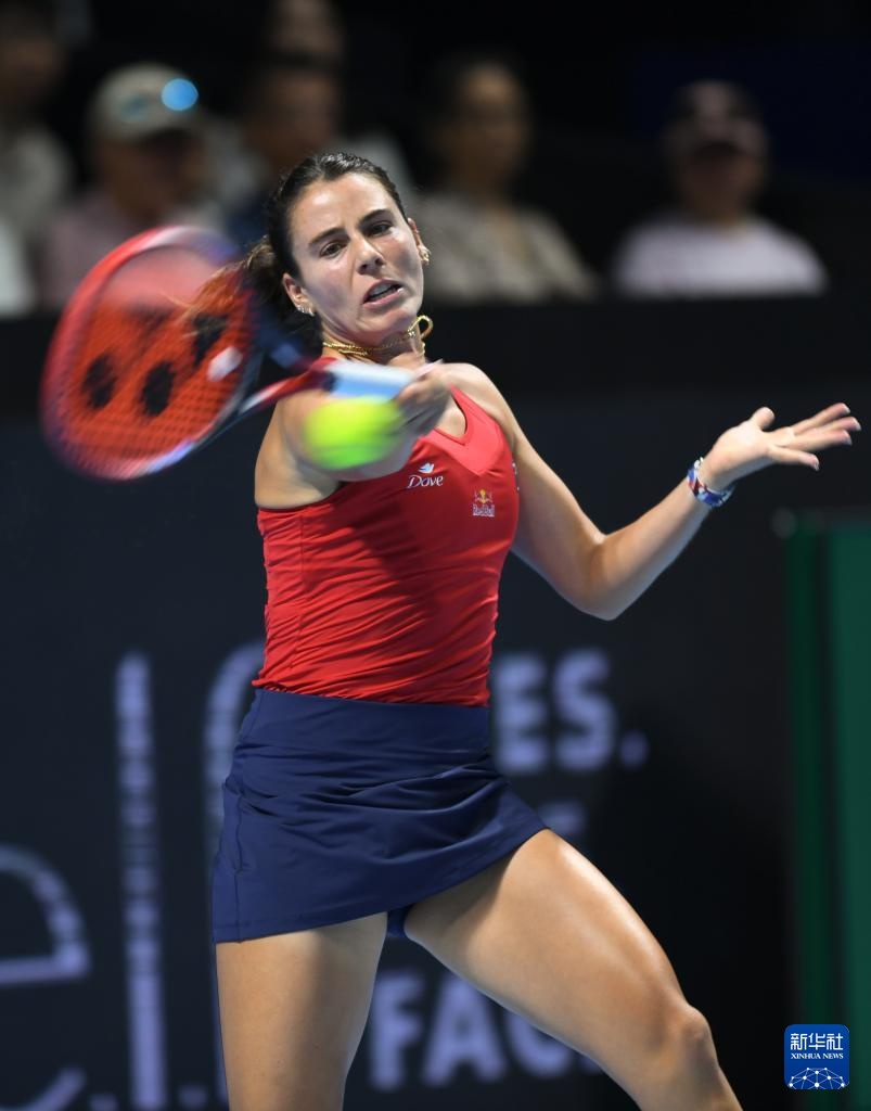 9月21日,美國(guó)隊(duì)選手納瓦羅在比賽中回球。最終,她在首場(chǎng)女子單打比賽中0比2不敵意大利選手科恰雷托。