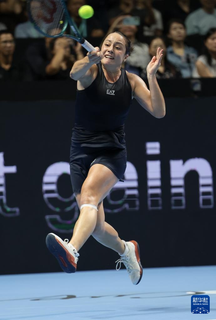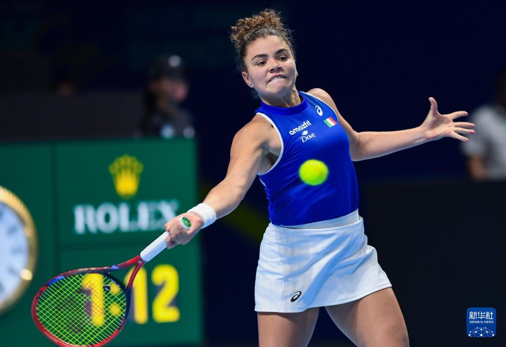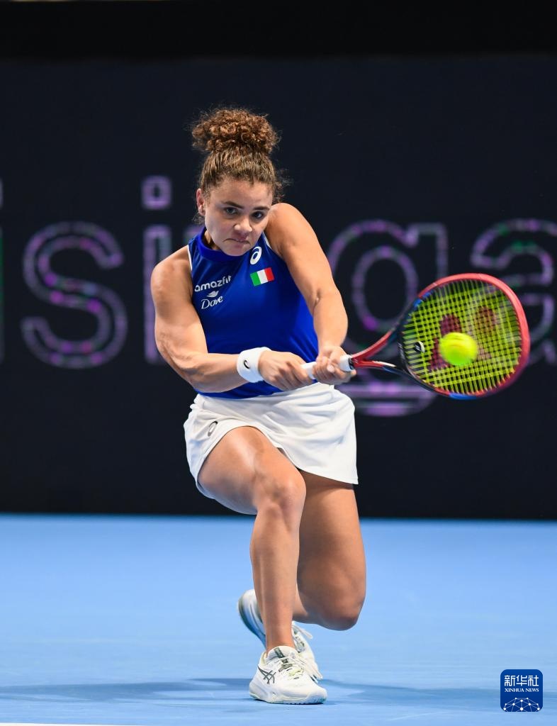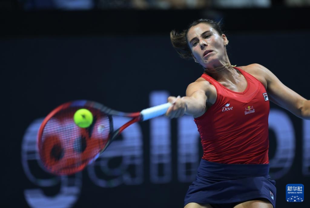 9月21日,意大利隊(duì)選手保利尼在比賽中回球。她在單打比賽中2比0戰(zhàn)勝美國(guó)選手佩古拉。