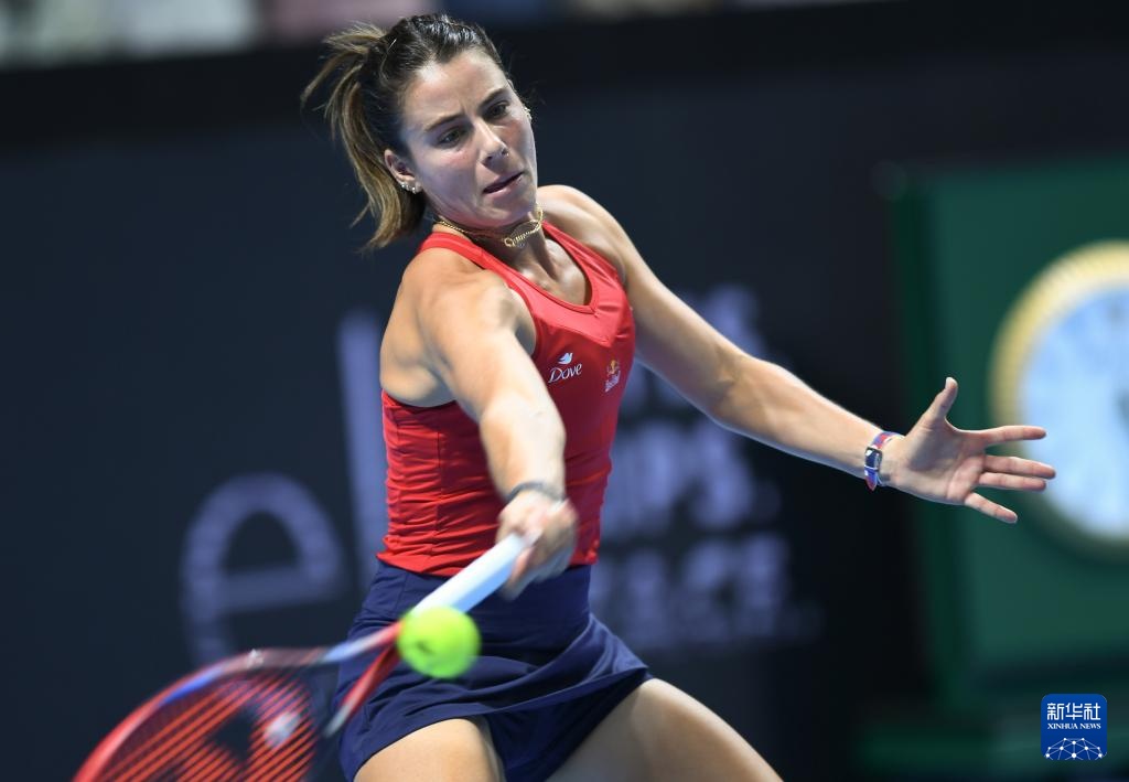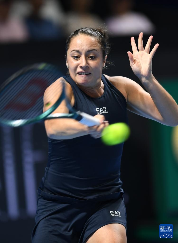 9月21日,意大利隊(duì)選手科恰雷托在比賽中回球。最終,她在首場(chǎng)女子單打比賽中2比0戰(zhàn)勝美國(guó)選手納瓦羅。