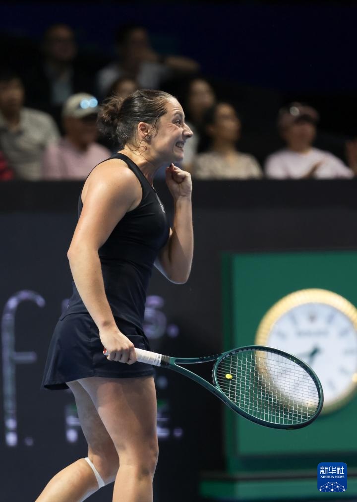 9月21日,意大利隊(duì)選手保利尼慶祝勝利。她在單打比賽中2比0戰(zhàn)勝美國(guó)選手佩古拉。