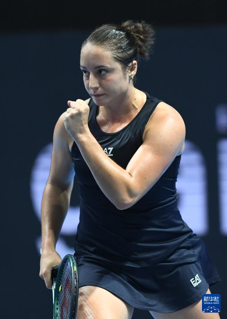9月21日,意大利隊(duì)選手科恰雷托在比賽中慶祝得分。最終,她在首場(chǎng)女子單打比賽中2比0戰(zhàn)勝美國(guó)選手納瓦羅。