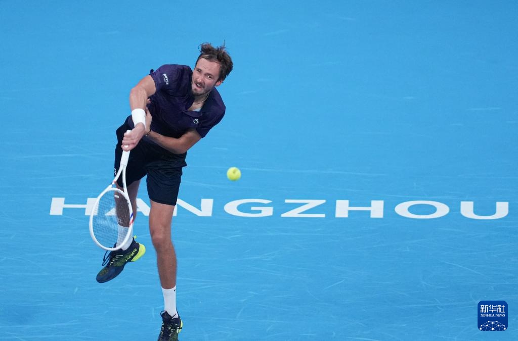 9月21日,俄羅斯選手梅德韋杰夫在比賽中發球。