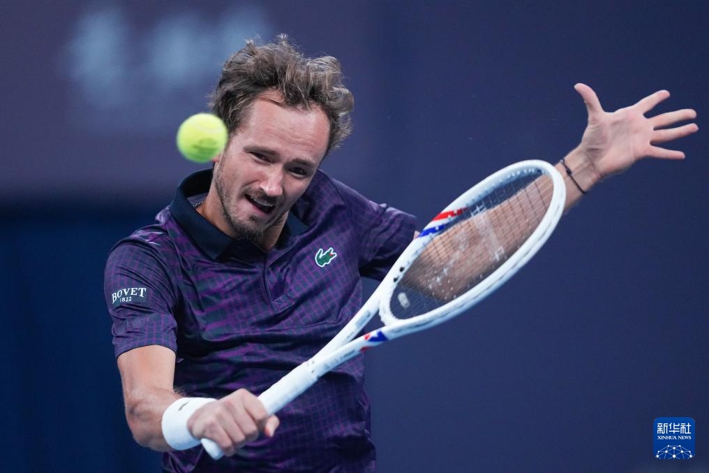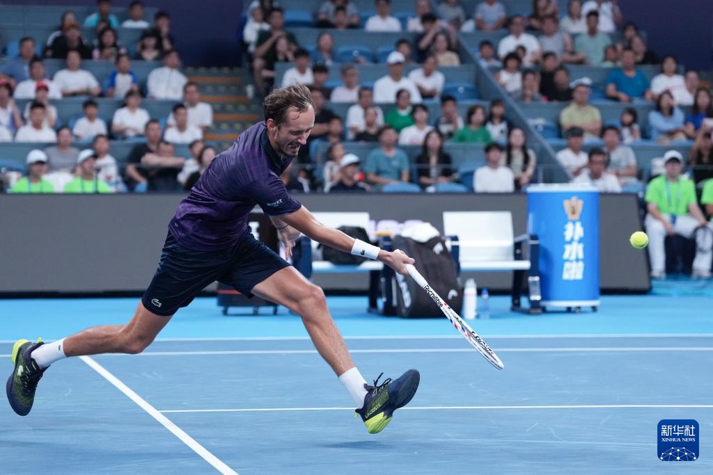 9月21日,俄羅斯選手梅德韋杰夫在比賽中回球。