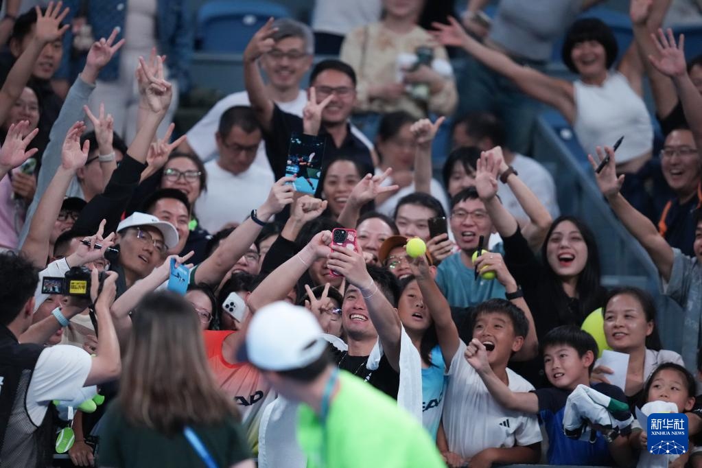 9月21日,中國選手吳易昺獲勝后與球迷合影。