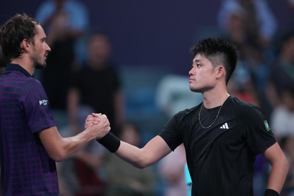 新華社杭州9月21日電(記者夏亮)在21日進(jìn)行的男子職業(yè)網(wǎng)球協(xié)會(ATP)250杭州網(wǎng)球公開賽四分之一決賽中,吳易昺在先丟一盤的情況下,再次上演逆轉(zhuǎn)好戲,2:1擊敗賽會2號種子梅德韋杰夫,首次闖入賽事四強(qiáng)。