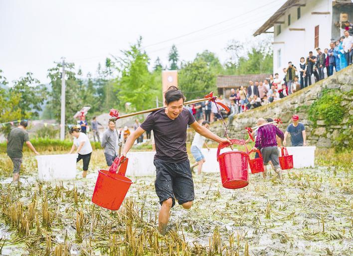 豐收節(jié)上的“抗旱保苗”挑水接力賽。(湖北日報通訊員 周仕偉 攝)