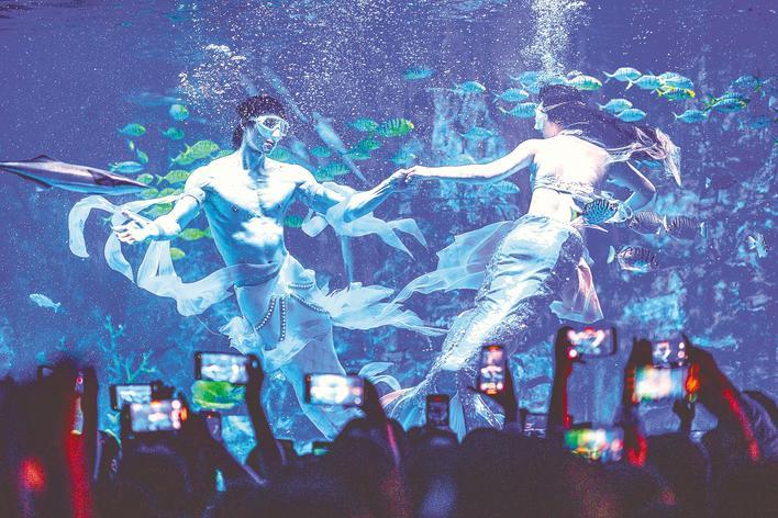 與魚共舞的美人魚表演,展現(xiàn)優(yōu)雅與靈動(dòng)。