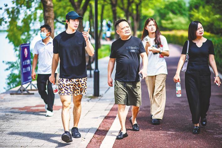 武漢體育學(xué)院新生報(bào)到,肖淞譯陪來(lái)自家鄉(xiāng)的學(xué)妹一家參觀校園。
