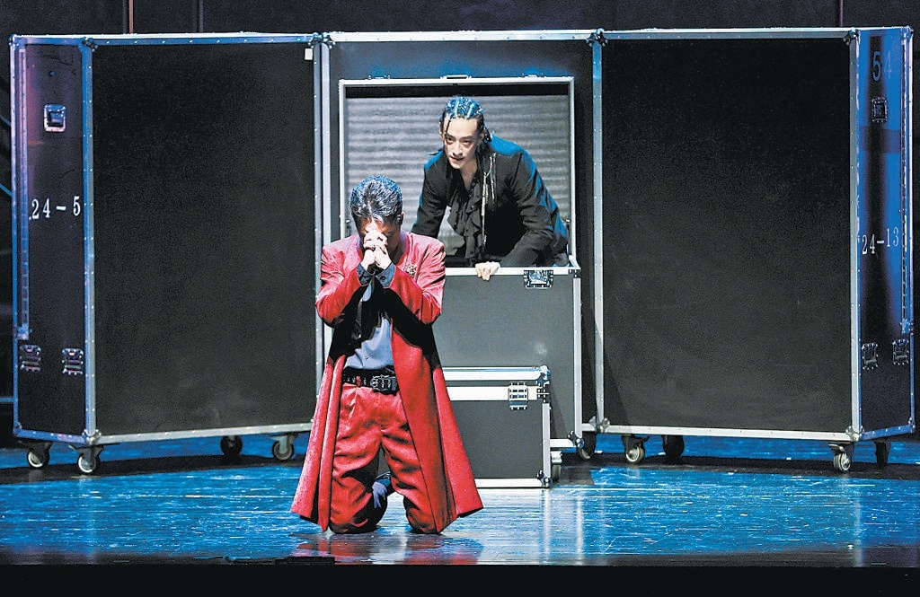 同時,《哈姆雷特》充分發揮北京人藝青年演員的各種優勢,以節奏強勁的現代舞、凌厲迅捷的擊劍、諧謔超脫的彈唱豐富舞臺表達,作為流動元素頻繁出現的服裝箱、道具箱強化了劇場和“服裝秀”的意味,讓人物剝離偽裝、直面自我的靈魂叩問更具反思性的沖擊力。