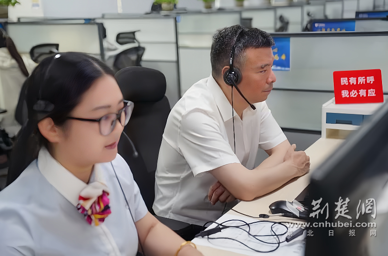 湖北電信陳志強(qiáng)總經(jīng)理深入一線接聽客戶投訴電話。通訊員 供圖