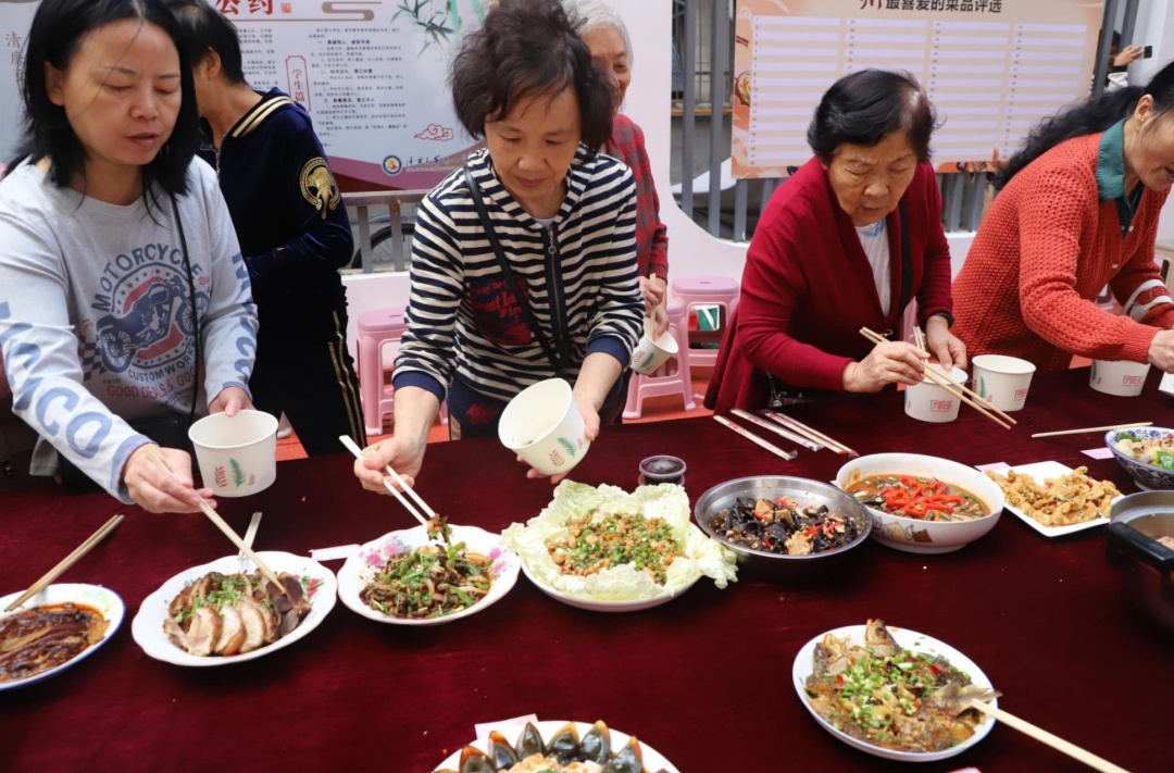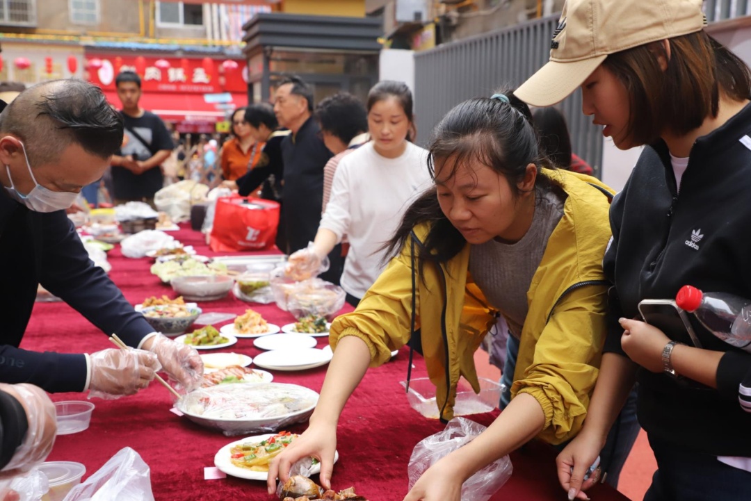 11時,“百家宴”將活動推向高潮。江漢社區組織40余戶商戶及200位居民,精心準備了近70道地道沙市美食。魚糕、藕丸、早堂面、珍珠圓子等經典楚味擺滿長桌,居民們在品嘗中感受沙市飲食的深厚底蘊和人間煙火氣。