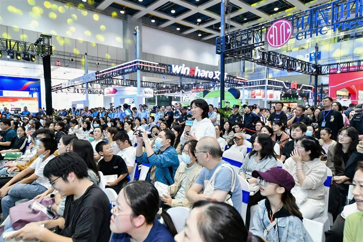 記者看到,展會現(xiàn)場人流如織,不少展臺旁正舉行著新書發(fā)布會、分享會等活動,吸引著讀者圍觀駐足,市民紛紛推著購物車選購書籍。